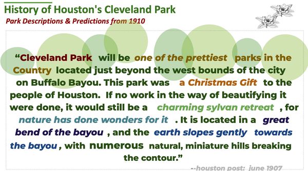 © 2025 Friends of Cleveland Park, a TX Nonprofit 501(c)3 - All Rights Reserved. EIN 33-4286070