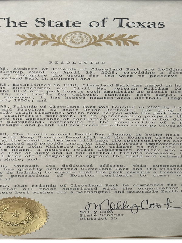 We’re deeply grateful for the hardworking team at Houston Parks and Recreation. Their dedication, friendliness, and consistent care help keep Cleveland Park beautiful and welcoming for everyone. Thank you for all you do! -- Friends of Cleveland Park.